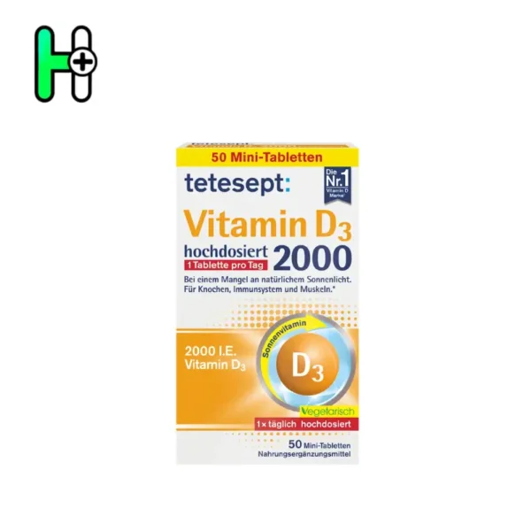 Tetesept Vitamin D3 2000 یک مکمل با دوز بالا برای حفظ سلامت استخوانها، تقویت سیستم ایمنی و حمایت از عملکرد عضلات است. این مکمل حاوی 2000 واحد بینالمللی (I.E.) ویتامین D3 در هر قرص میباشد که کمبود این ویتامین مهم را جبران کرده و از مشکلات ناشی از کمبود نور خورشید جلوگیری میکند.